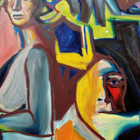 Echoing the influence of early modernists such as Picasso and de Kooning, Figures in Flux explores the tension between interior emotion and external form. The overlapping bodies and fractured space invite viewers to contemplate identity, intimacy, and perception in a disjointed world.