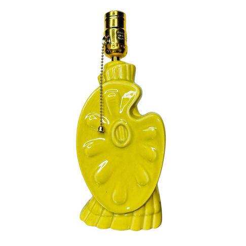 This enchanting yellow pastel artist's paint palette table lamp exudes a sense of playful creativity and artistic flair that defined the flair of 1950s American home décor. Molded in bold yellow ceramic and accented with a pull-chain socket, the lamp embodies both utility and artistic flair.
