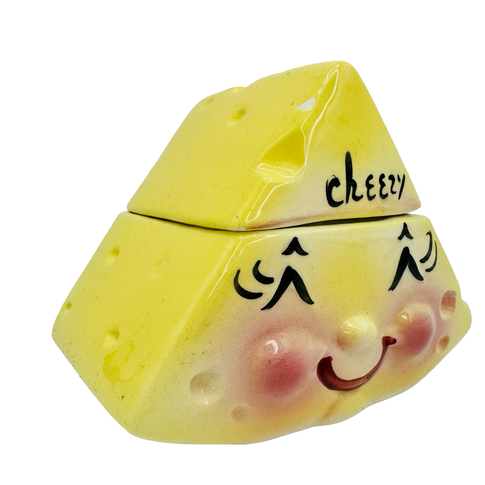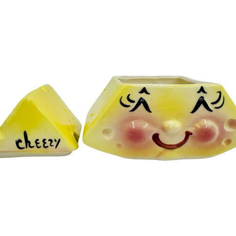 This playful ceramic condiment jar, whimsically labeled “Cheezy,” was created by Margaret DeForest as part of the DeForest of California line. Produced in Duarte, California, between the mid-1950s and early 1960s, this piece exemplifies the company’s signature blend of charm and functionality. With its smiling face and kitschy appeal, it's a standout example of mid-century kitchenware at its most delightful.