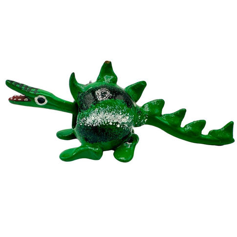 This “Seismic Dinosaur” and others like it are born in rural southern Mexico in villages of the North American Native Nahua. As a caterpillar becomes a butterfly, these little creatures began their lives as gourds, grown to become motion filled mascots, pets and pals.
