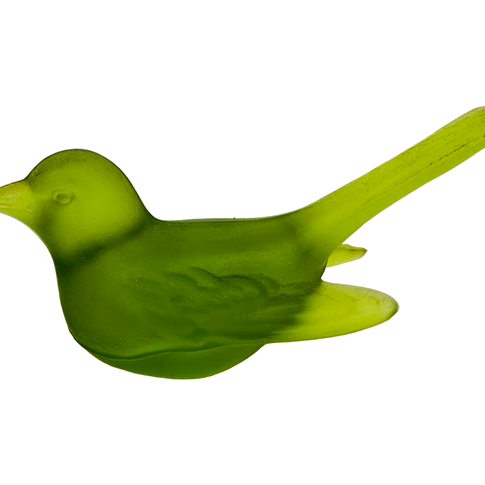 This delicate green frosted glass wren was produced by Westmoreland Glass Company during the 1930s. Known for their elegant Depression-era glassware, Westmoreland created this charming piece with softly molded feather details and a graceful pose. Originally marketed as a decorative figurine or table accent, it embodies the era’s blend of affordability and refined craftsmanship.