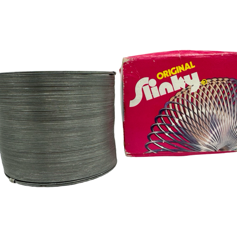 The original walking spring toy that "walks" down stairs or inclines. Packaged in its iconic red box, this version reflects the popular reissues of the early 1980s.