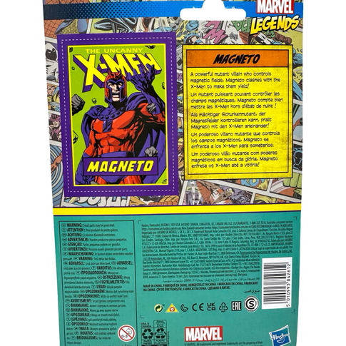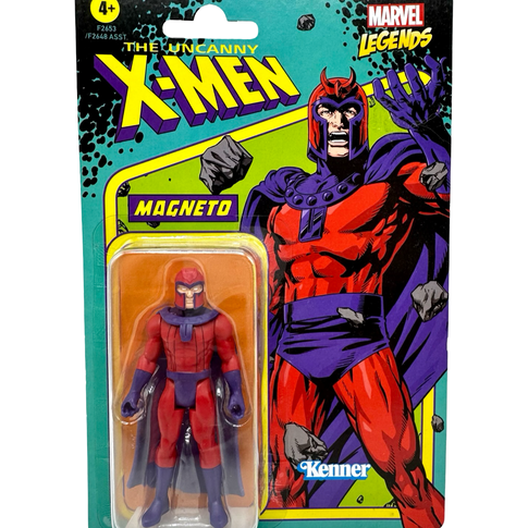 Released as part of Hasbro’s Marvel Legends Retro 375 Collection in March 2021, this 3.75-inch Magneto figure pays homage to classic Kenner action figures of the 1980s. Featuring retro-style sculpting and packaging, it showcases the Master of Magnetism in his iconic red-and-purple costume.